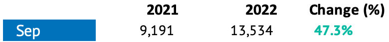 You can see in September 2022 (last row) that we are down 4.4% from September 2021.